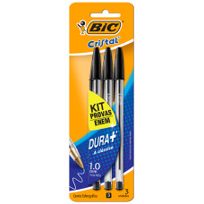 Caneta Esferográfica Cristal 1.0mm 3 Pretas Bic